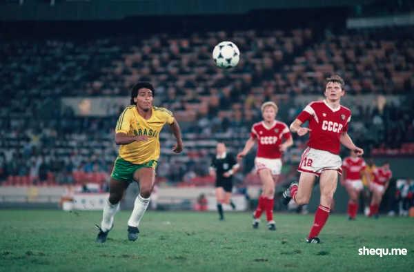 Brazilian soccer player Romario (L) during a match against USSR at the 1988 Olympics.