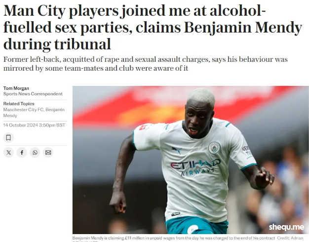 《每日电讯报》报道,曼城旧将本杰明-门迪向法院提交的书面声明中表示,曼城多位球员都出席了他的派对并与其他女性发生关系,但最后只有他被诬告强奸。